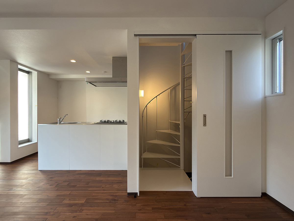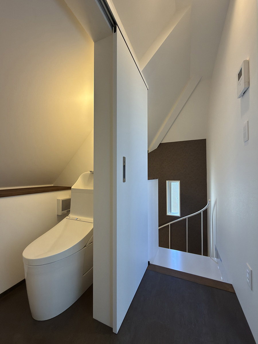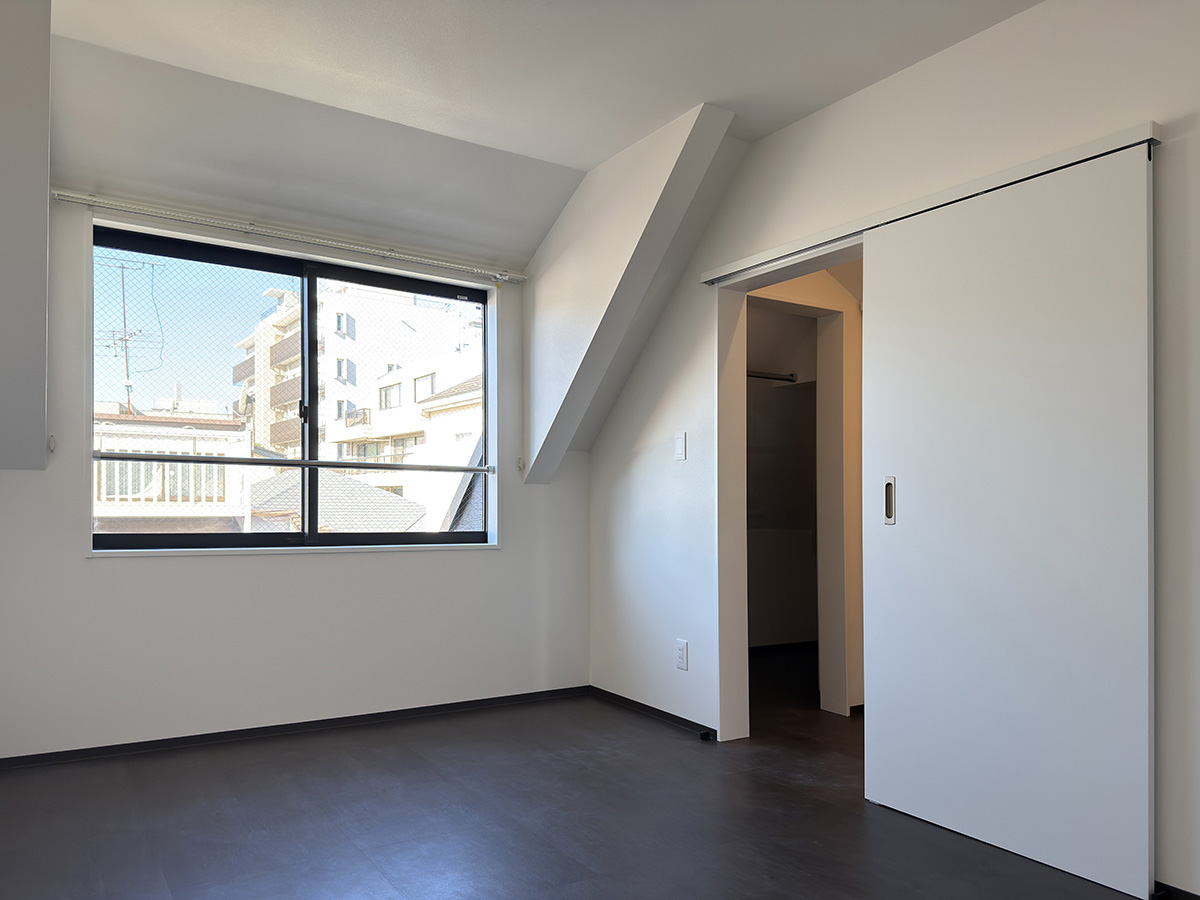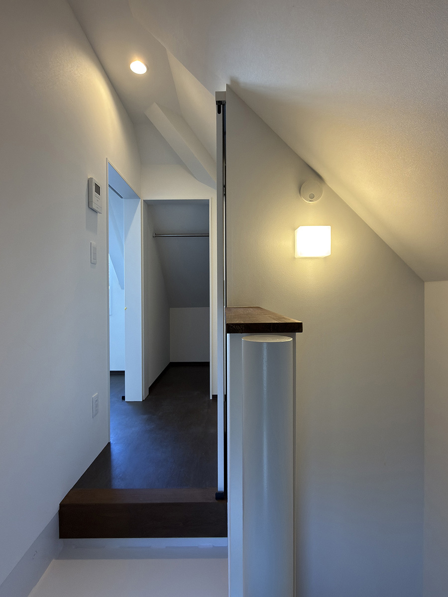 3階(小屋裏)寝室から引戸の奥にウォークインクロゼットを望む