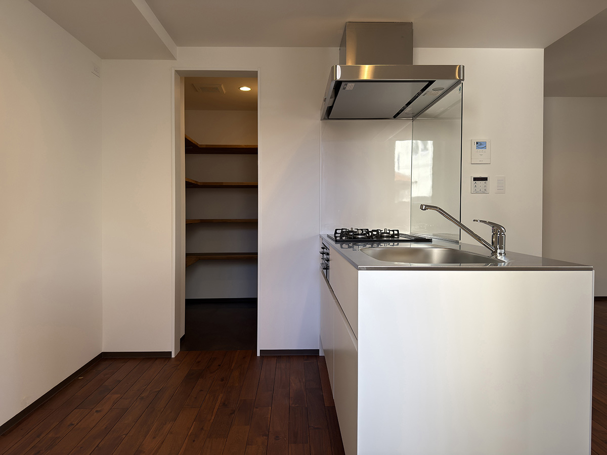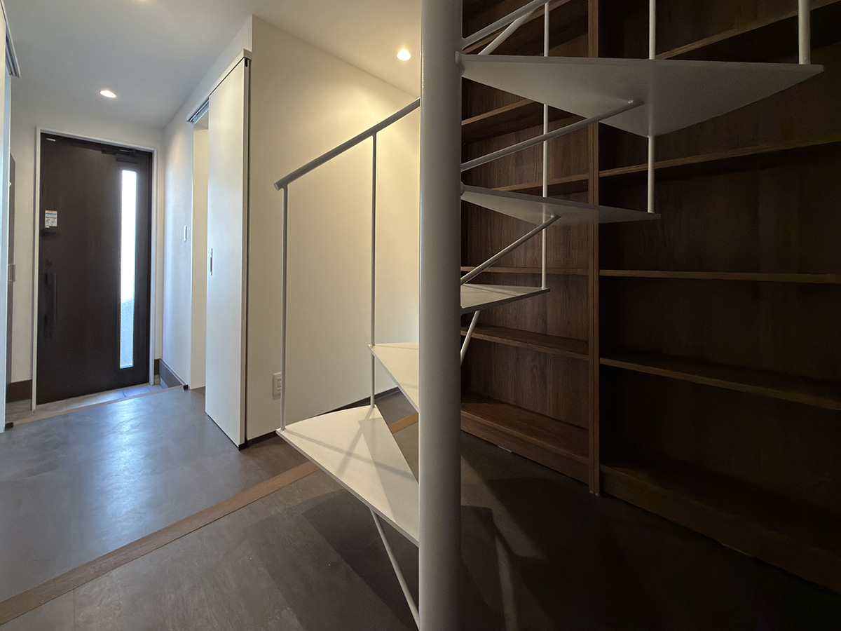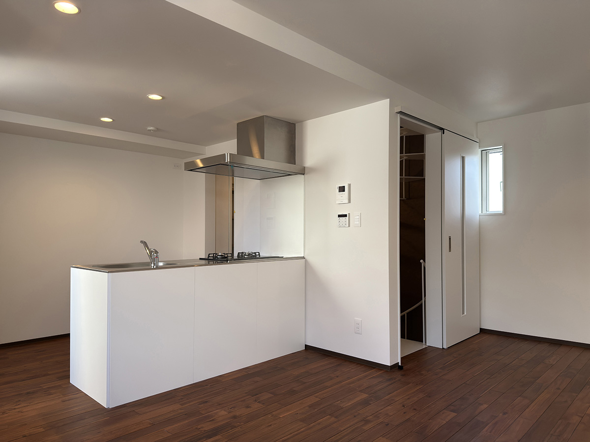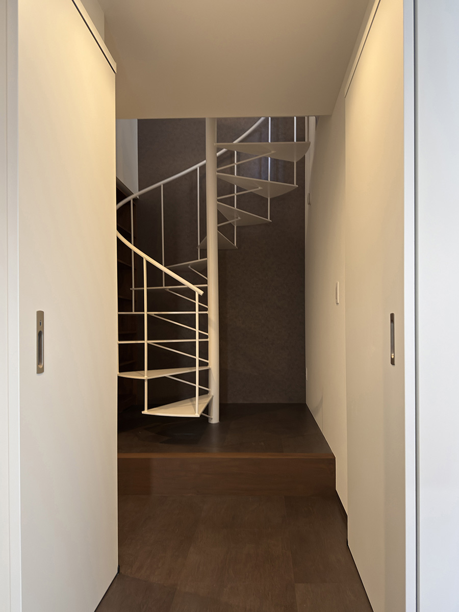 3階(小屋裏)寝室から引戸の奥にウォークインクロゼットを望む